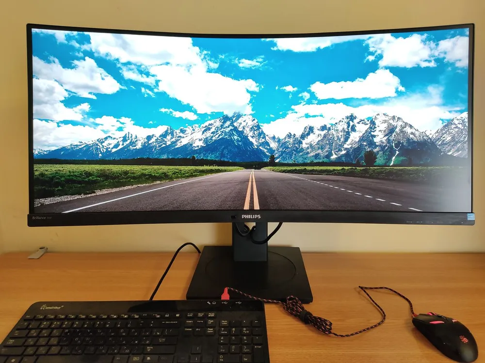 Конечно, Brilliance 346P в первую очередь привлекает внимание 34-дюймовым ультра-широким экраном с разрешением 3440 x 1440 точек. Для нашего региона соотношение сторон 21:9 не просто редкость – экзотика, вдобавок он еще и изогнутый. Поэтому сразу надо остановиться на плюсах и минусах такой формы.