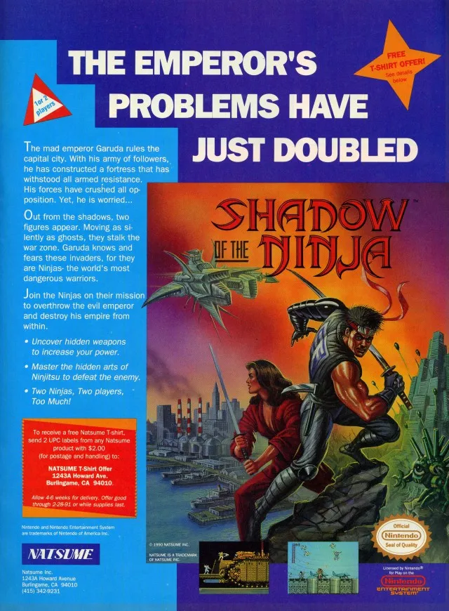 Видеоигра в жанре платформер, оригинал вышел на NES (Dendy) в 1991 году. Позже проект увидел свет и на Nintendo 3DS, WII U. В Европе игра распространялась под именем Blue Shadow. В самом начале видеоигры мы выбираем одного из двух ниндзя. Один из них мужчина, другой – женщина. Они выглядят по-разному, но в игре они ведут себя одинаково.