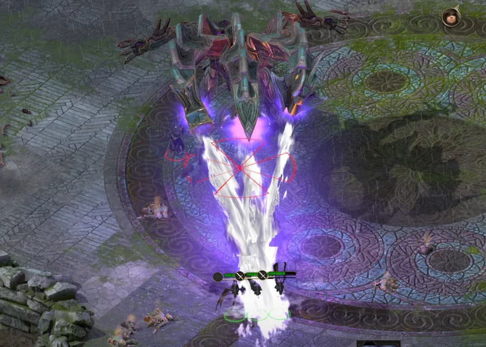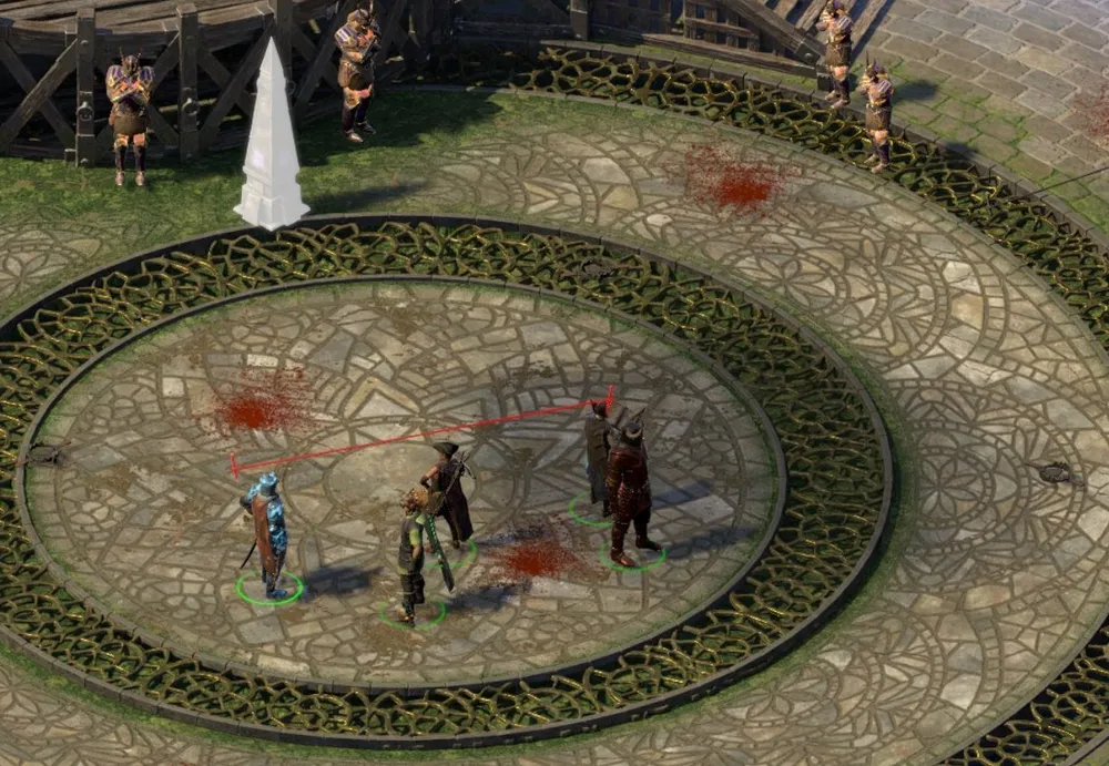 Снимаем ловушки и проходим на помост. (Не помешает поставить свою ловушку у входа.) Один из соратников активирует обелиск и быстро бежит на возвышение, помогать основному отряду.