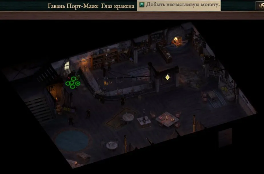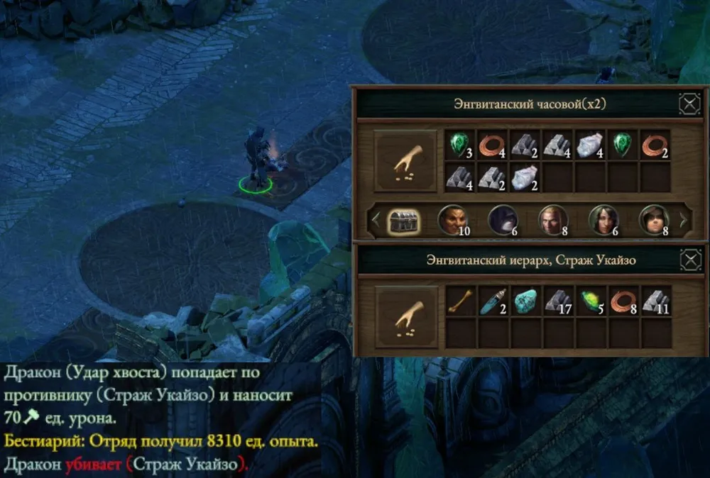 Вновь загружаю игру с отрядом на «Пути проклятых» и отправляю его к Некитаке, расследовать происходящее в «Гильдии заклинателей воды». Тамошние враги не представляют угрозы для нашего отряда; отбираем у них «Жезл охотника из Глубин», применяем код и открываем дверь.