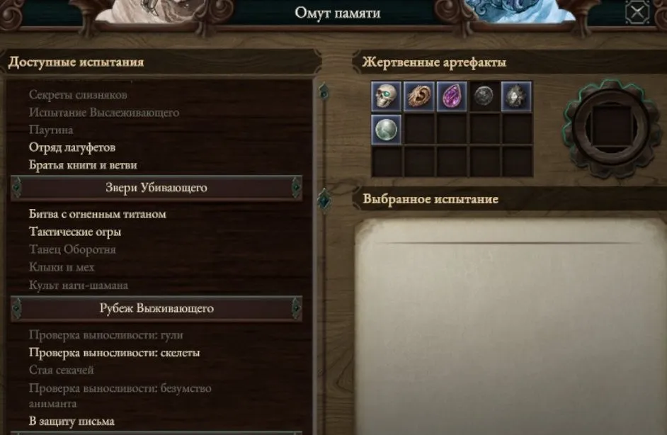 Принесённые артефакты опускаются в «Омут памяти», после чего в списке появляется по три испытания от каждого из трёх мастеров пути;