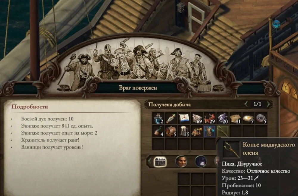 Сколько вражеских или союзных вымпелов брать на абордаж? Пока не решите, что собрали достаточную сумму для улучшения корабля и оружия команды. Мой отряд прервал процесс, когда скорость передвижения улучшенной джонки достигла восьмидесяти единиц.