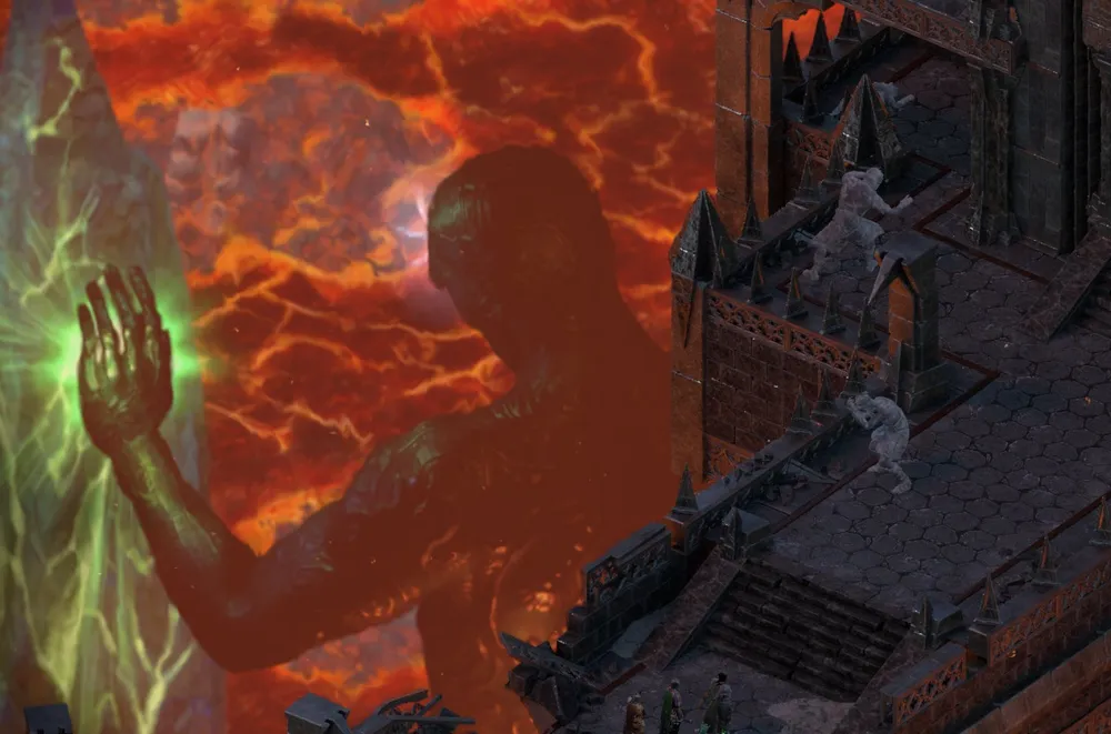 Пройден лабиринт на вершине горы, а внутрь не пускают; не открывается вход. Оказывается, что он открывается только после посещения «Пепельного чрева» и очередного «свидания» с Эотасом. Делать нечего, отправляемся туда. Обитатели – ратуны – настроены агрессивно, но высокий уровень дипломатии помог избежать боя; их предводитель отправил отряд к огненному дракону.