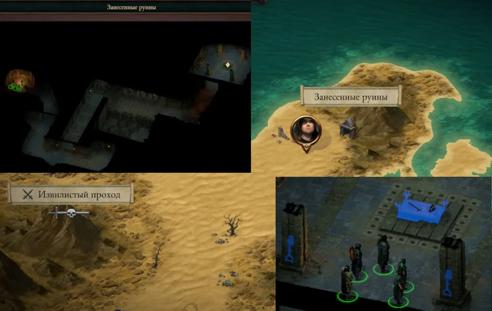 Я обнаружил ошибку в действиях своего одинокого героя! Помните безымянный остров в левом нижнем углу карты, где для отключения огня вокруг саркофага нужно было активировать четыре рычага одновременно, что не по силам одиночке? Нужно было пробраться в комнату неподалёку от входа и активировать секретную плиту, защищённую обелисками смерти: это отключит пламя, откроет саркофаг и уберёт неприятный эффект, запускающийся после включения четырёх рычагов. Помимо этого плита снимет все неснятые ловушки, лишив отряд опыта и небольшого количества золота.