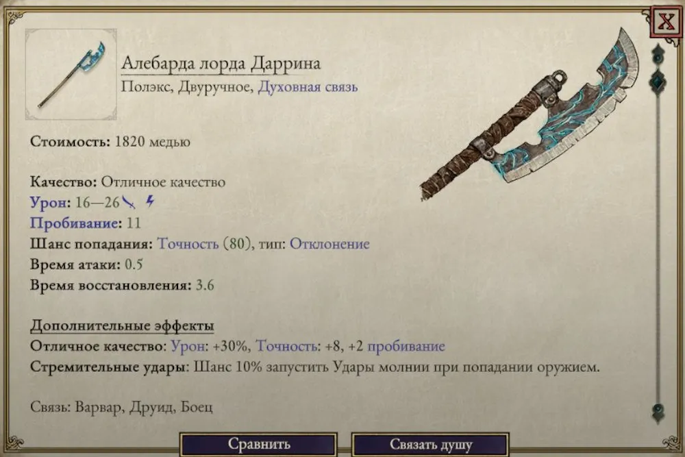 Неизвестно в какой момент (вероятно, после очередного абордажа) отряд стал обладателем очередного оружия с привязкой у душе; я не стал его усиливать.