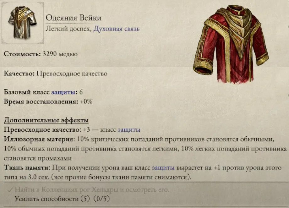«Одеяние Вейки» – усилить способности (усиливал способности владельца, пытался усилить другим – ноль эффекта, улучшить не удалось).