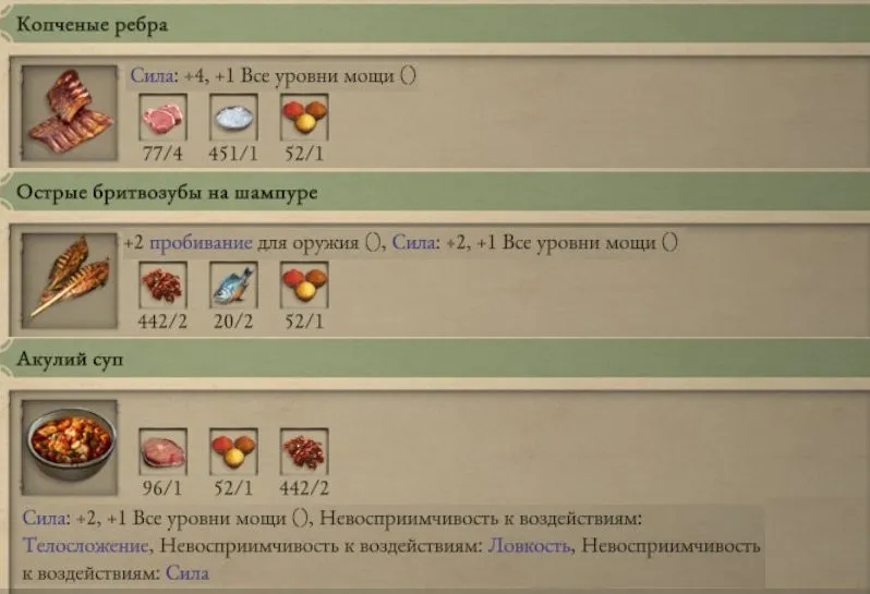 Вот как выглядел приём полезной пищи и напитков в первой части: на две-пять минут характеристики повышаются, затем эффект исчезает.