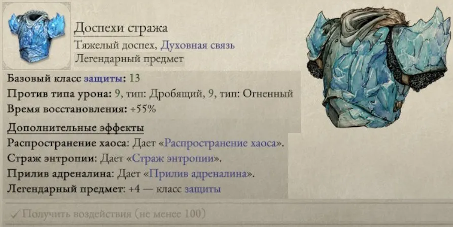 «Доспехи стража» – получить воздействие (пришлось бежать в «Глотку» на Некитаке, спускаться в «Руины старого Города» и бродить по ловушкам).