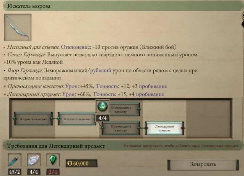 «Pillars of Eternity»: лук и арбалет для улучшения требуют нанести урон, которым обладает улучшаемое оружие.