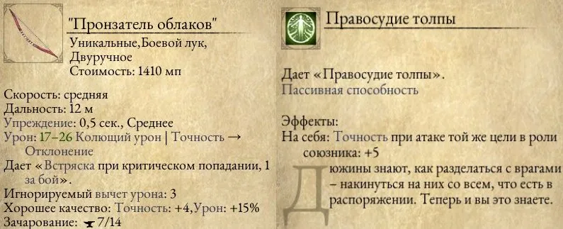 А что же Дюжины? Увы, улучшить свою репутацию в их глазах не получится; да и лук потеряли… К этому моменту в казне должно быть достаточно золота, чтобы купить не менее хороший лук у Играна, на рынке Копперлейна.