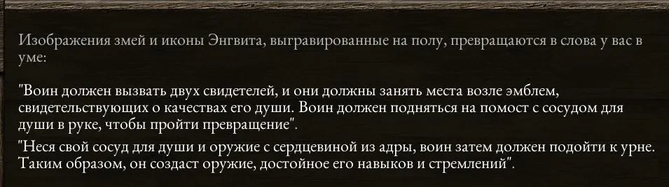 Затем активируем два символа, справа и слева от алтаря (вопреки мнению, это может сделать и один персонаж, поочерёдно, стоять на символах не обязательно, главное – активировать их, чтобы начали светиться). Затем последует кат-сцена, в вазе у подножия лестницы герой улучшит копьё в зависимости от ответов на вопросы. (В приведённом скриншоте варианты улучшения: первый столбик – первый ответ первой голове в сочетании с последовательными ответами второй; второй столбик – второй ответ первой и так далее. Выбирайте!)