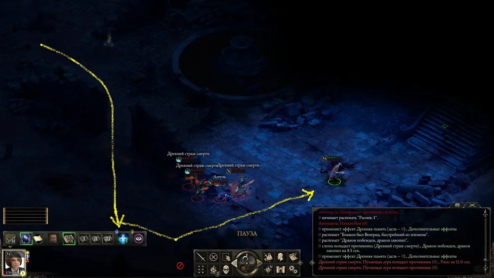 3) Когда надоест, выходим из боя, подкрадываемся к руинам (см. схему), а как обнаружат - рвем в обход. Какой-то неживой товарищ норовит сбить с ног - лучше обогнуть его под аркой. Иногда пара стражей гонится до самого входа - можно набрать немного опыта.