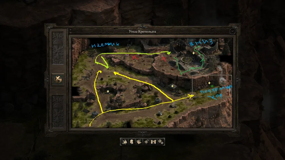 1) На карте Утесы очистить проходы на восток и северо-запад. Наемников можно выманивать по одному (или сколько получается окучить за раз), всех убивать не обязательно.