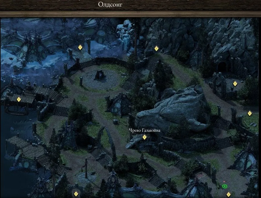 Там же, на вершине, была найдена одна из квестовых птиц и великолепный боевой молот. Чуть позже на территории Олдсонга зашёл в Чрево Галавэйна и купил неплохой топор: