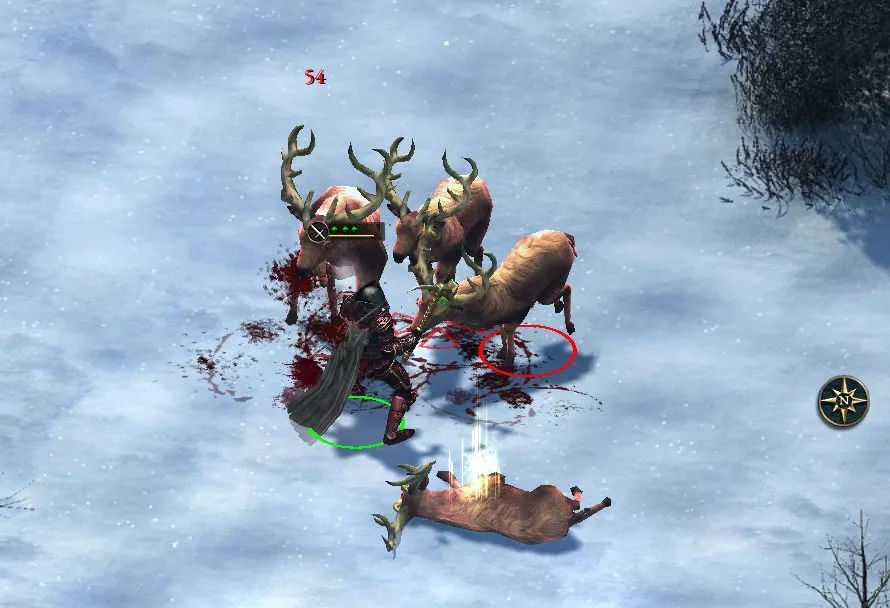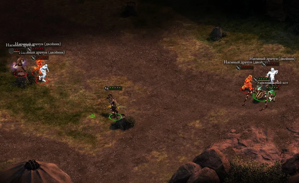 Когда попытался отманивать противников в сторону пещеры, осыпая при этом стрелами, всё-таки удалось «растягивать» толпу и приканчивать врагов по одному. Однако чтобы уничтожить единственного противника, приходилось расходовать все доступные для одного боя способности.