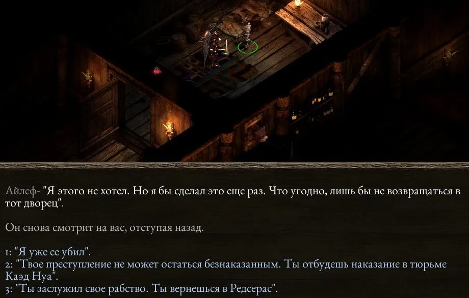 А вот с огром, взятым в плен эльфами, разговор не состоялся: даже не смотря на то, что его путы перерезал герой метко пущенной стрелой. (К слову, фраза со стрелой появляется, только если в руках у героя лук.)