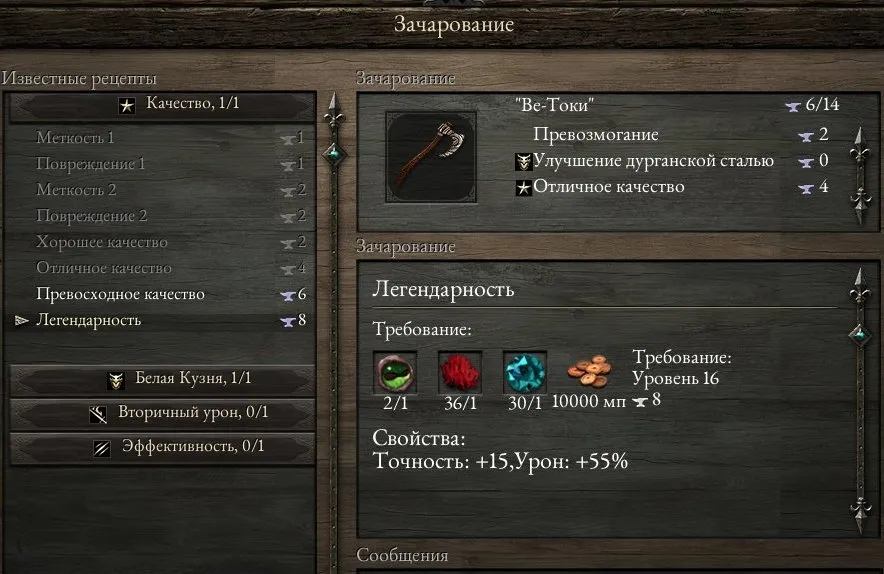 Чтобы быстро улучшить кинжал, необходимо держать в руке только его, второе оружие недопустимо.