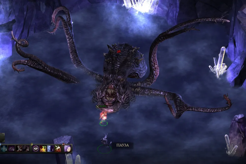 Спускаемся в пещеру и встречаем очередного босса: кракена. Едва ли не единственный бой, перед которым герой употребил пищу – и победил первой попытки.