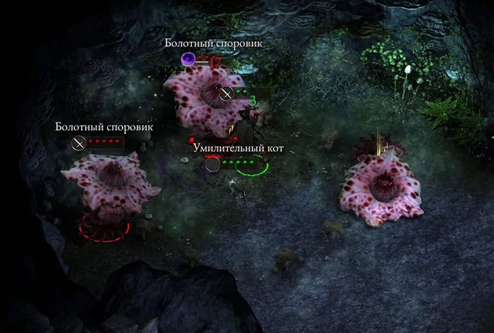 Не стал никого призывать, взял в руки лук: герой сходит с ума, бросает лук и переключается на оружие ближнего боя. Убрал клинки в рюкзак: герой выпускает лук из рук и кидается на споровиков с кулаками; через мгновение сходит с ума и бежит прочь. Вложил в оба слота луки: сработало!