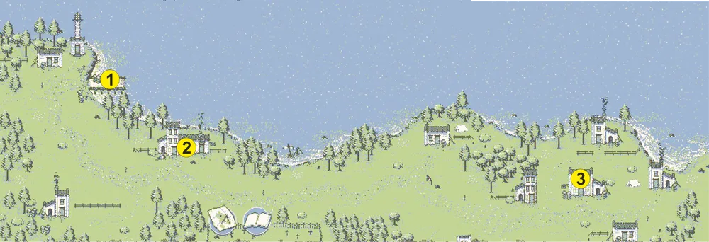 Откроется экран трюма, на котором вы увидите свой груз. В правом нижнем углу этого экрана имеется иконка рюкзака. Выделив нужный предмет и щелкнув по иконке, вы поместите этот предмет в рюкзак. Ориентируясь по шкале плавания, на которой есть счетчик ходов, подведите корабль к берегу и высаживайтесь на него. Для этого достаточно указать курсором на берег у корабля и нажать левую клавишу мыши.