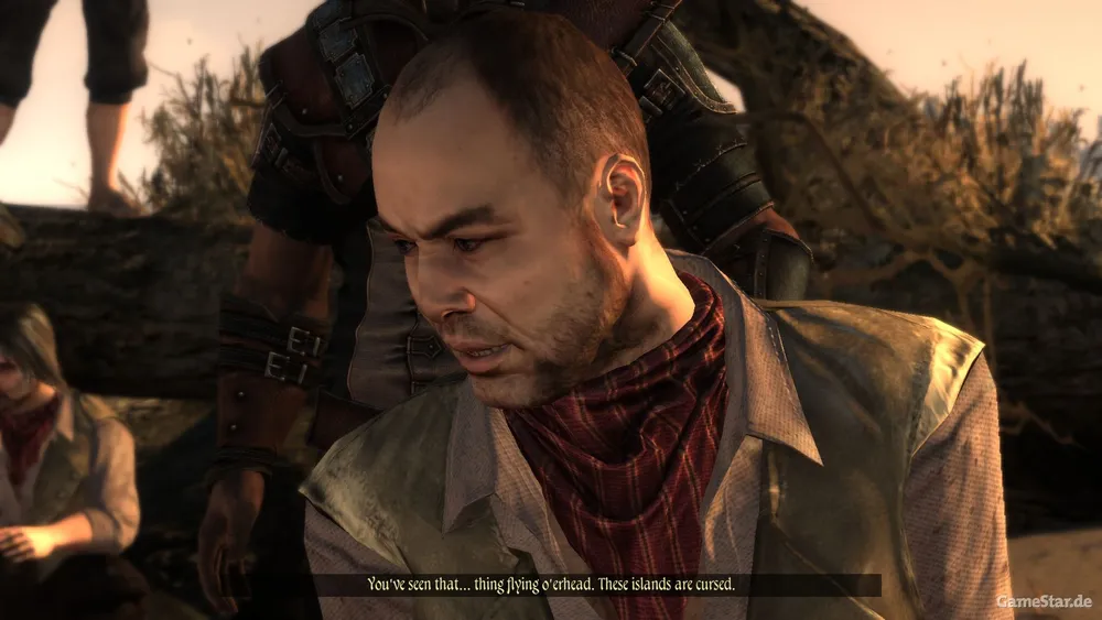«Умри», сказал Эд Тил, печально известный лидер пиратов на Kanger Bay, новой локации дополнения. Обратите внимание на детальные текстуры лица и эмоции на его лице.