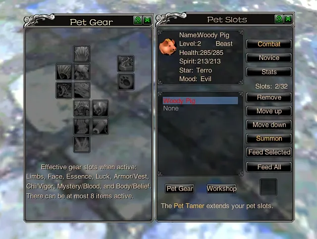 Питомцы, они же петы, сопровождают игрока во время приключений. Они всячески помогают, в сражениях, gathering'e и crafting'е. Ваше домашнее животное приложит все усилия, чтобы помочь Вам на Вашей поездке.