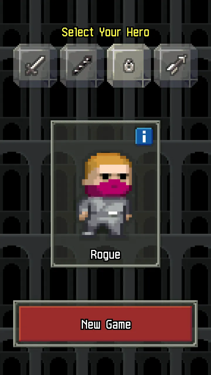 Пиксельные подземелья – игра с видом сверху в жанре РПГ. В ней мы исследуем забавно нарисованный в стиле пиксель-арта лабиринт. Забавно, что игра, несмотря на свою, милую, чуть ли не мультяшную и явно пиксельную графику, отнюдь не простая. Начиная игру, мы выбираем класс своего героя среди доступных трех – warrior, mage, rogue. Есть и 4-ый класс – девушка huntress, чтобы играть за нее надо завалить любым персонажем третьего босса в видеоигре. А после выбора класса нас незамедлительно отправляют в подземелье.