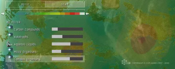 • Найдите товары. Каждая планета имеет различные наборы доступных ресурсов в различных количествах. Чтобы обнаружить какие, найдите планету и используйте или контекстное меню (ПКМ) или selected item меню, чтобы войти в планетарный режим. Здесь вы можете использовать устройство в левой части экрана, чтобы увидеть распределение специфических ресурсов. Если вы в области, где определенных ресурсов не так много вы можете использовать слайдер, чтобы настроить расцветку для более точной картины локального распределения. Мы также дадим набор скиллов для людей, которые используют ПВ помногу, чтобы вы могли сканировать более эффективно.