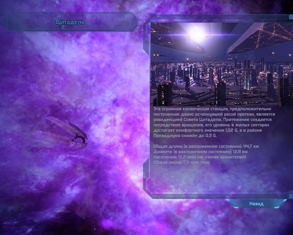 Совета Цитадели. Притяжение создается посредством вращения, его уровень в жилых секторах достигает комфортного значения 1.02 G,