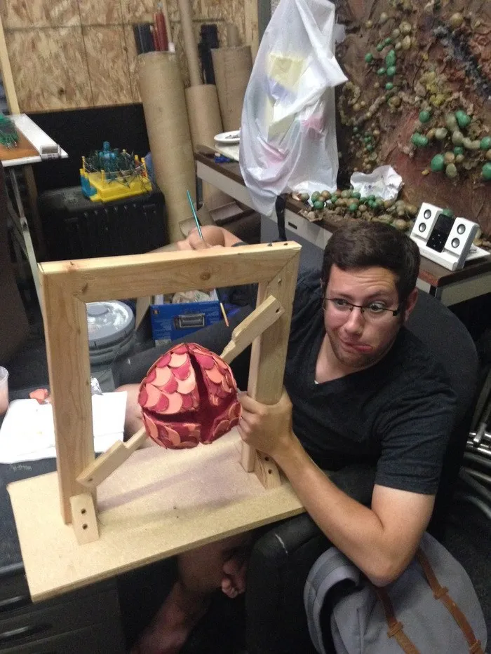 И ещё кое-что. Состоялся замечательный "рабочий визит": в студию приезжал давний и очень близкий друг разработчиков - Эрик Сиккони, который также когда-то работал над Неверхудом. Он остановился на несколько дней и успел за это время сделать кое-какую работу по части кукольной анимации. А точнее, он анимировал вот это существо. Что это такое и что оно делает - тайна. Но это на самом деле очень смешное и странное существо. Спасибо, что навестил нас, Эрик!