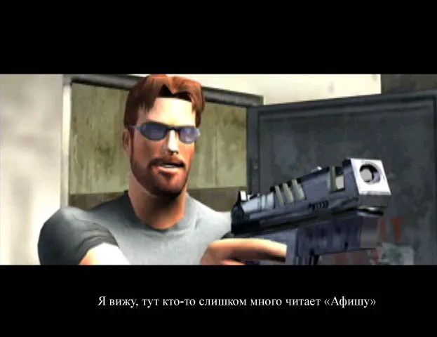 На расстоянии одной поездки ждет игрока знакомство со следующим главным действующим лицом – мистером стелсом. Но даже внезапно (для игрока) оказавшись на территории Солида Снейка, сценаристы и иже с ними не становятся в кодзимовскую позу "у нас все ну очень серьезно", а продолжают подавать материал с едва заметной улыбкой, как юмористический блок новостей, где кинозвезды развлекаются стрельбой из новой винтовки. Я уже успел четко и по-пацански увильнуть от пересказа сюжета и возвращаться к нему не собираюсь. Это не тот случай, когда предлагаемое будущее стоит воспринимать в оруэлловском ключе и видеть в каждой попавшейся на глаза мелочи глубины потаенного смысла от непонятной и непризнанной гениальной японской души, не делающей разбора между Уралом и Аралом. Тонкий, дозированный стеб над развитием общества - он гораздо ближе американцам, при всей своей кажущейся простоте и наглядности. За HH так и видится некий молодой Тарантино от видеоигр – уже смешавший любимые жанры в коктейль "Бодрячком, пацанчики", но еще не достаточно оборзевший, чтобы перегибать палку в кипеше на паханов.