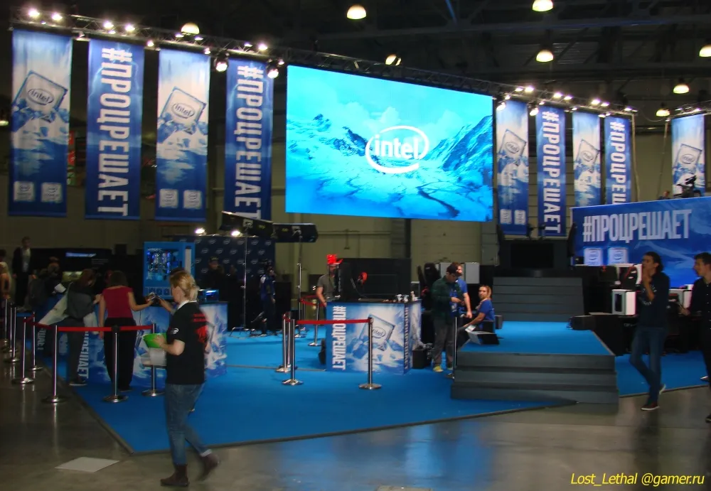 Кроме PlayStation VR, на выставке можно было опробовать и конкурирующие системы. В Oculus Rift обували на стенде Intel.