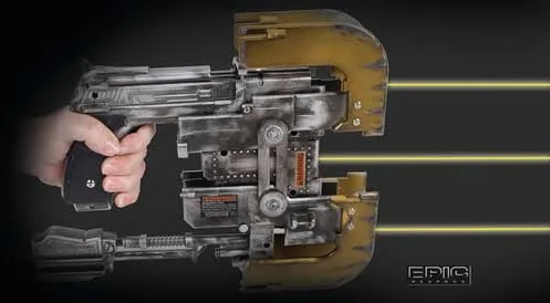А сегодня я представляю вашему вниманию новую работу мастеров Epic Waepons - это самый настоящий Plazma Cutter, т. е. плазменный резак. Он полностью копирует оружие из игры, при этом главный элемент аналога может находиться как в горизонтальном, так и в вертикальном положении, что действительно делает его настоящим орудием борьбы с некроморфами.