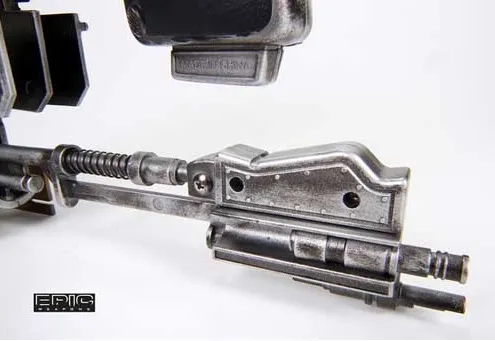 Данная модель очень хорошо сделана в плане дизайна, потому что разработчики с бережливостью отнеслись не только к первоисточнику, но и к деталям. Размеры данного агрегата составляют 17"x11" и толщиной 3". Довольна большая игрушка, да и выглядит впечатляюще. Также данная модель оснащена 3,7-вольтовой батареей, которая обеспечивает зарядку аккумулятора на 30 минут. Также, как в оригинале, оружие имеет три смертоносных луча, которые активируются при нажатии на спусковой крючок. Приблизительный вес каждого плазменного резака оставляет 2,5 кг.
