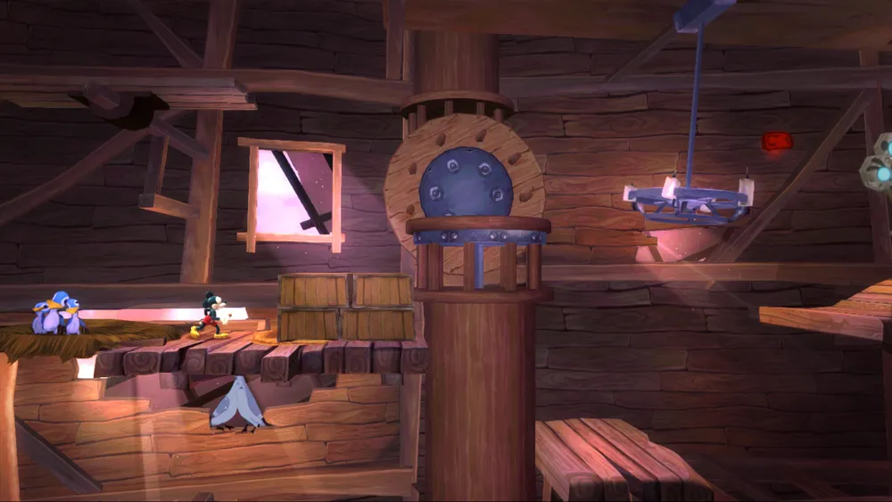 Epic Mickey корили за очень неудобную камеру, и разработчики учли этот момент при создании при второй части. За несколько часов, проведенных в Epic Mickey 2: The Power of Two, я никаких проблем с камерой не заметил. Но заметил другое - герои, в том числе и молчаливый ранее Микки Маус, научились разговаривать, да еще и на хорошем русском языке. И самое замечательное, что голоса им дали люди, которые озвучивают героев во многих диснеевских мультиках.