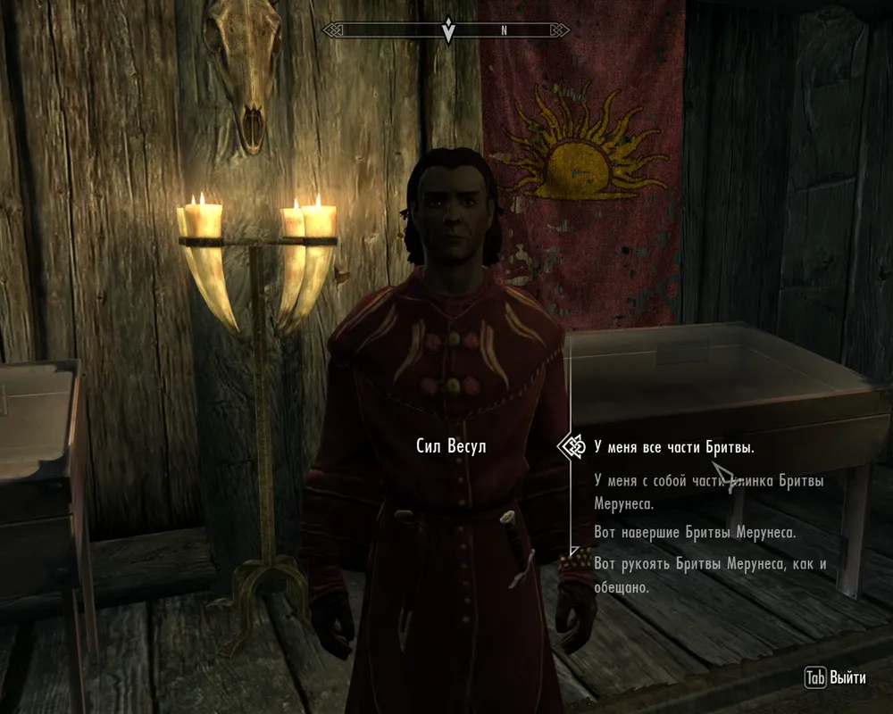 Сил Весул изымет у вас все части и вручит 3000 скайримских долларов септимов. Затем от него мы узнаем, что для объедениния этих частей необходимо провести ритуал у святилища Дагона. Отправляемся в указанное место.