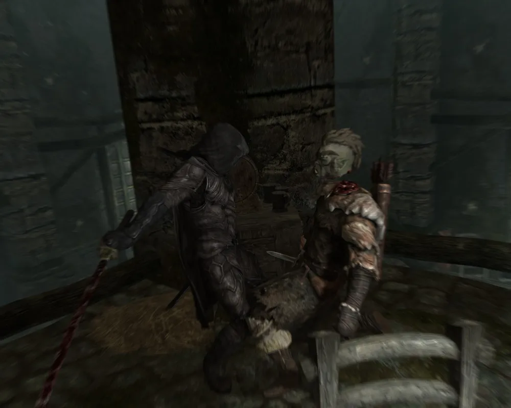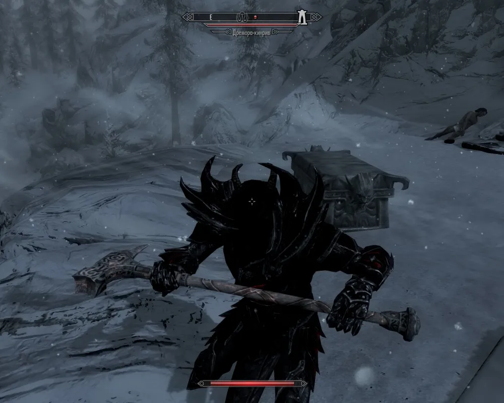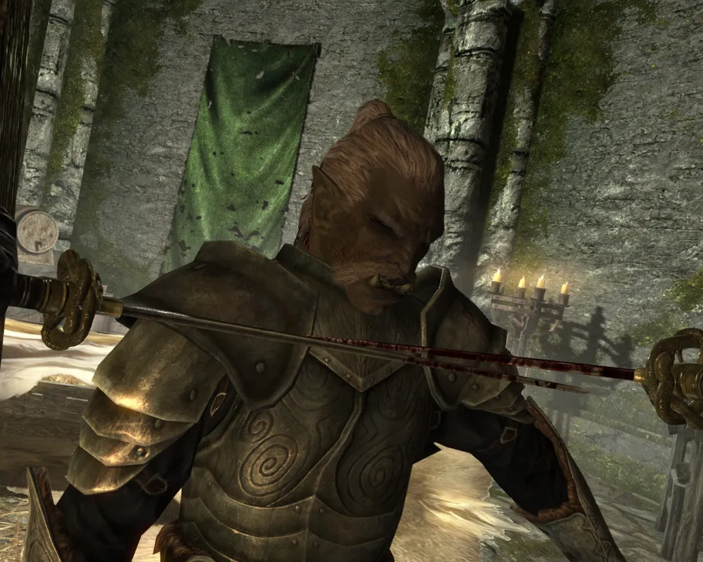 Даже прокачанному воину стоит опасаться его зачарованного двуручника. Советую уклоняться от ударов и использовать крики.