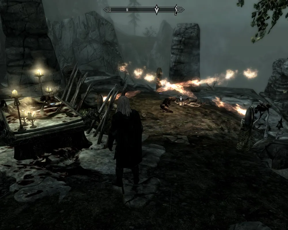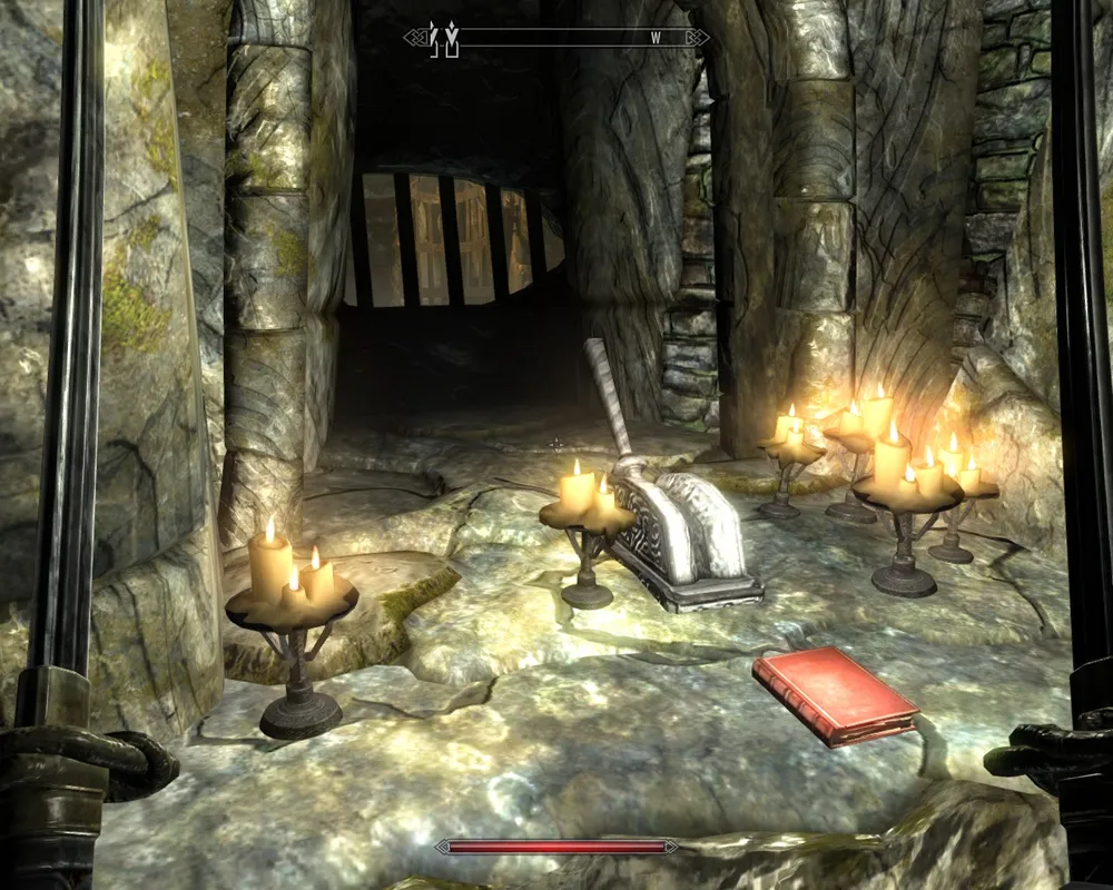 2.Идёте напрямик, превращая изгоев в мёртвых изгоев. Приградой здесь могут стать два еретика с зачарованными клинками и их ручной тролль. Ибо лететь с вершины горы по ступеням высоко и больно, воспользуйтесь этим… и да прибудет с вами FUS RO DAH!