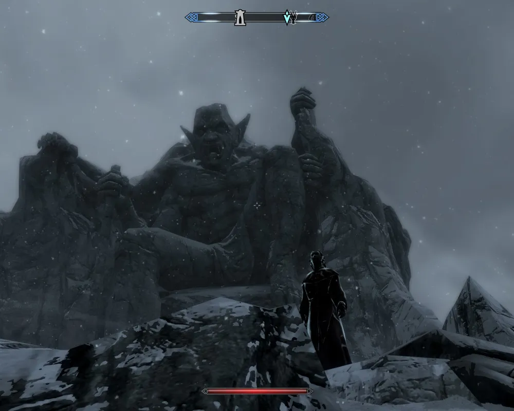 В горах трудно будет не заметить огромную скульптуру даэдрического принца. На призывы Сила Дагон не ответит и тогда нам придётся брать инициативу в свои руки.