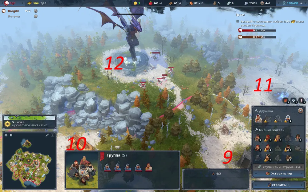 Тем не менее, такими темпами можно зарабатывать славу, только если у нас нет конкурентов. Как можно заметить наш конкурент Боргильд к этому моменту уже существенно нас опередила по количеству заработанной славы. Впадать в уныние пока ещё рано, поскольку окружающая нас территория обязывает к поиску и использованию особенностями местности и её обитателей.