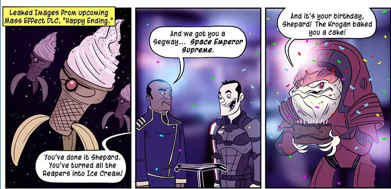 И если BioWare действительно делает новый финал, который должен угодить всем недовольным пользователям, то стоит готовиться к худшему. Ведь он может оказаться каким угодно. Например, таким: