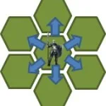 Если использовать гексагоны, вам понадобится меньше отрядов, чтобы создать укрепленную линию обороны на линии фронта. На поле с гексагонами вашему противнику потребуется больше ходов для того, что бы нанести удар со спины отряду с охраной.