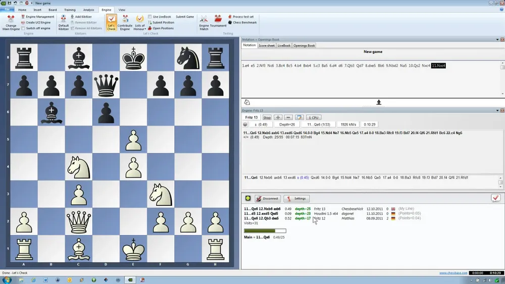 Основным нововведением Fritz 13 по сравнению с предыдущим изданием стала опция "Let's Check", которая может изменить весь шахматный мир. Ее суть заключается в том, что теперь полет вашей творческой мысли не ограничен мощностью вашего компьютера. Перед вами - весь мир! С тысячами и тысячами всевозможных позиций, просчитанных на 20 и более ходов вперед, из которых вы сможете выбрать варианты с наилучшим исходом! Причем проанализированных с использованием разных шахматных движков на мощнейших машинах! Но это далеко не просто мертвая неповоротливая база данных, большое разнообразие которых существовало на просторах сети и до этого. Это живая, обновляющаяся ежеминутно среда! Вы можете размещать в ней свои позиции для анализа или же предоставлять возможности своего компьютера для расчета уже имеющихся. Чем больше вы помогли другим - тем выше ваш рейтинг, и тем быстрее будет проанализирована запрошенная вами позиция!