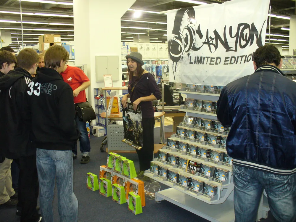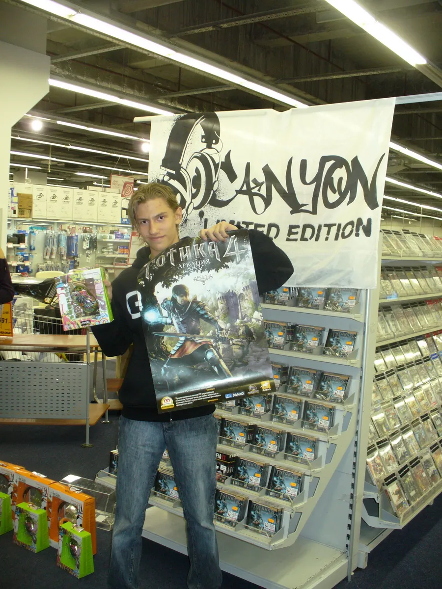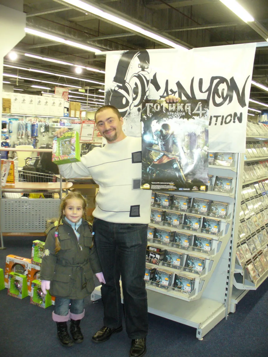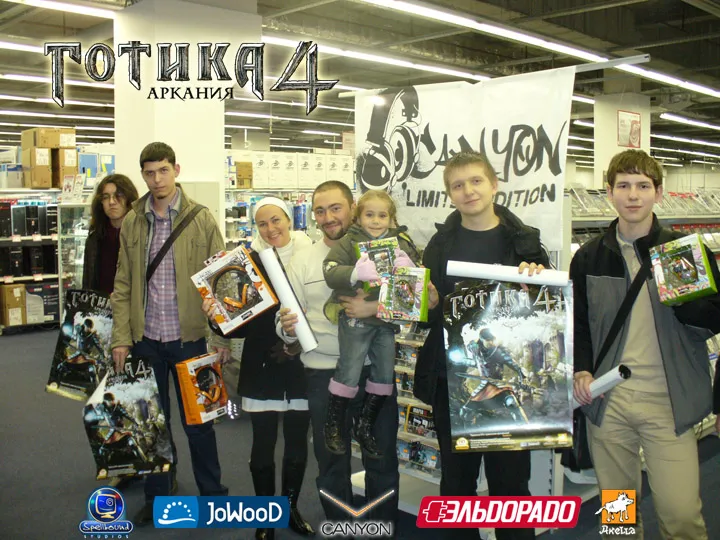 Весело и празднично прошёл старт продаж "Готики 4" в магазине "Эльдорадо" на Люблинской улице! Самые ранние покупатели игры были награждены красочными плакатами с изображением главного героя приключения, а самые удачливые – выиграли отличные и необычные призы от компании Canyon: комплекты наушников, компьютерных мышей и вебкамер в стиле граффити в самых удивительных расцветках!