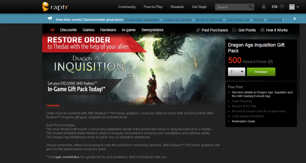 • Переходим по ссылке http://raptr.com/store/item/dragon-age-inquisition-amd