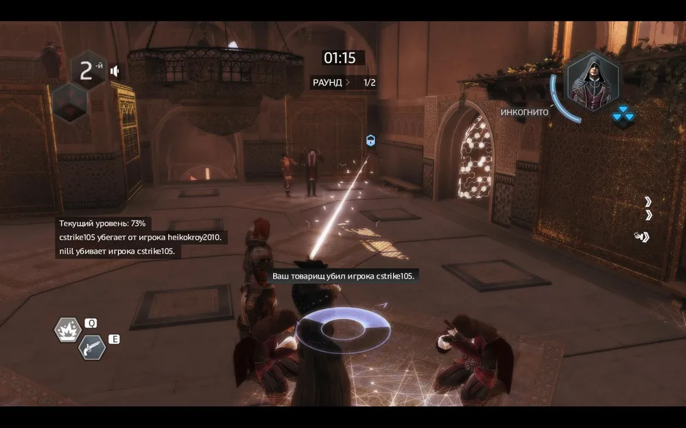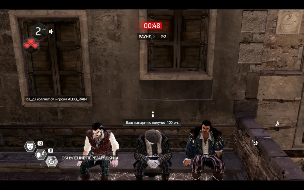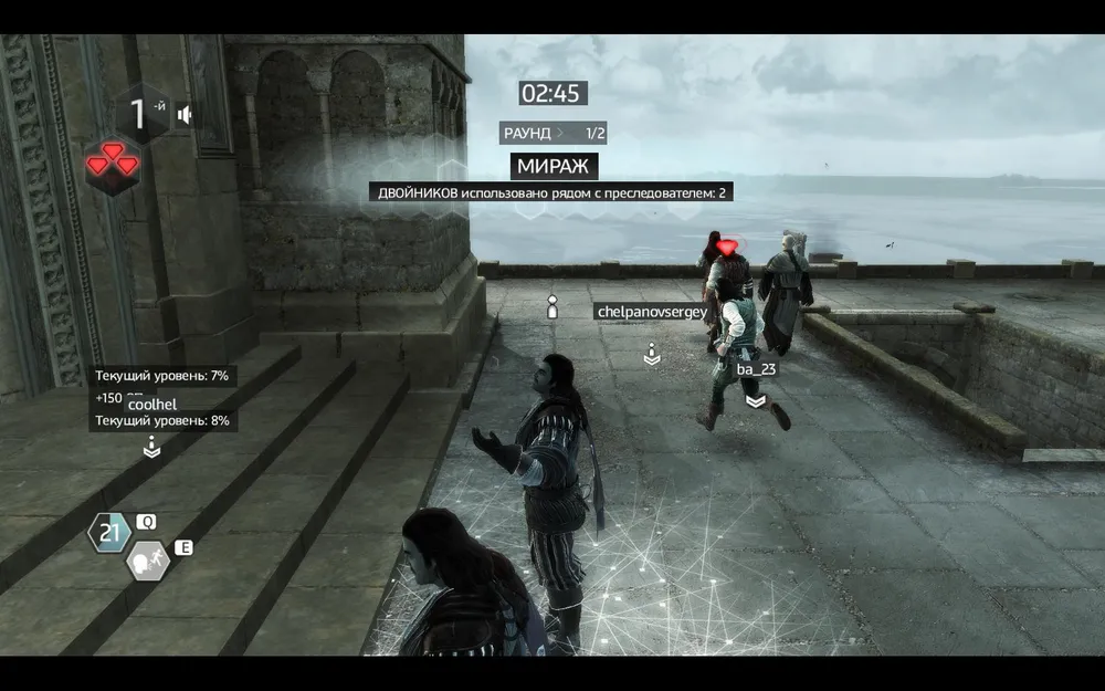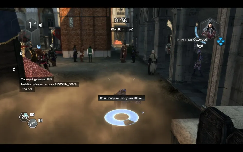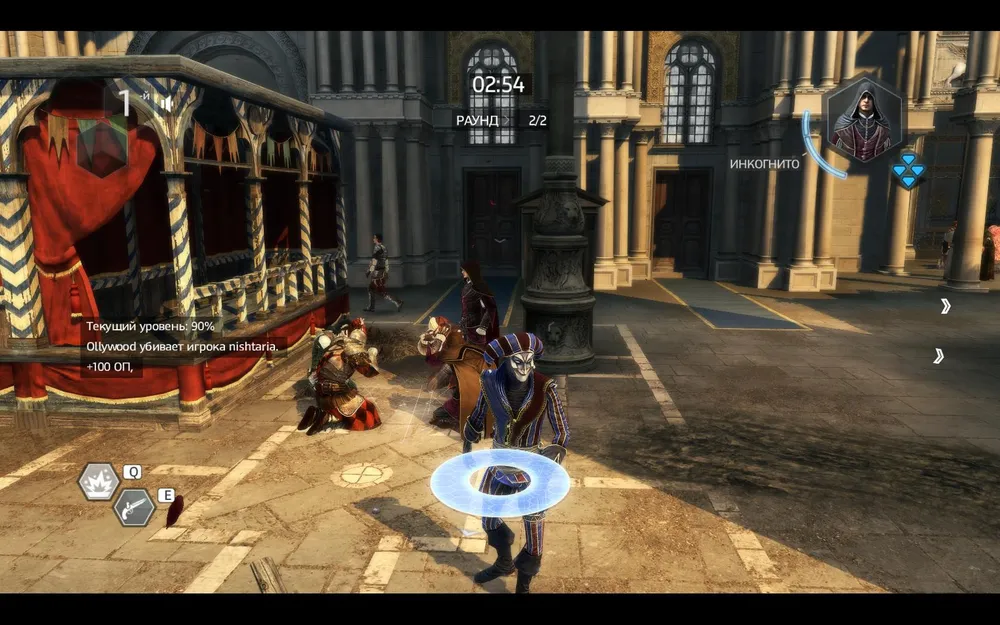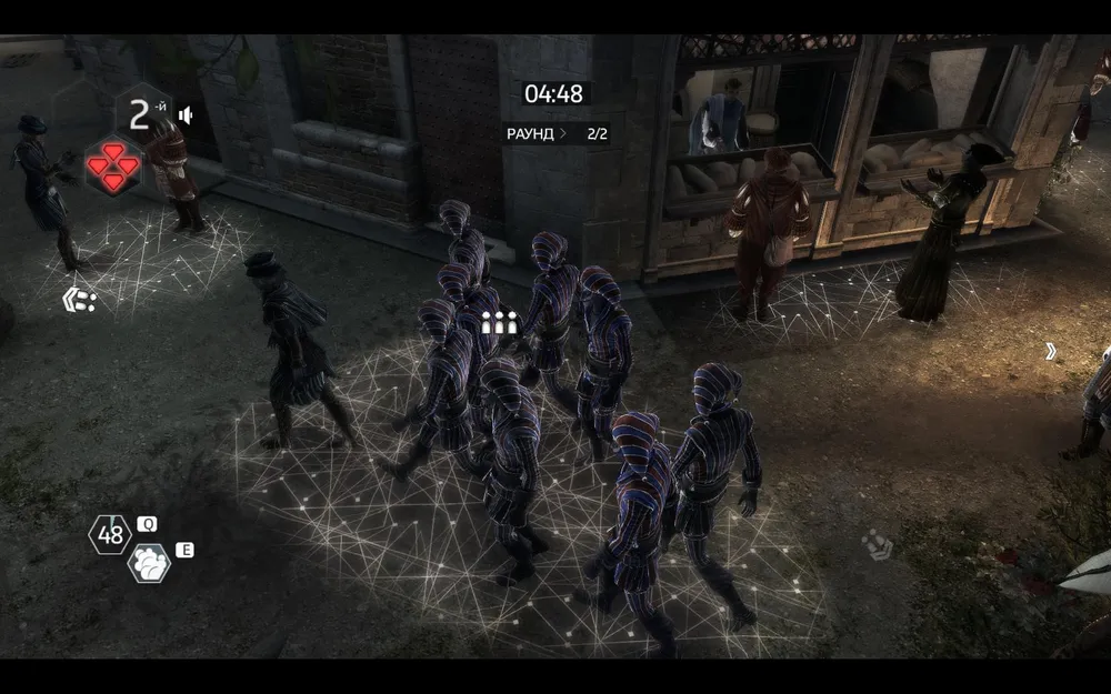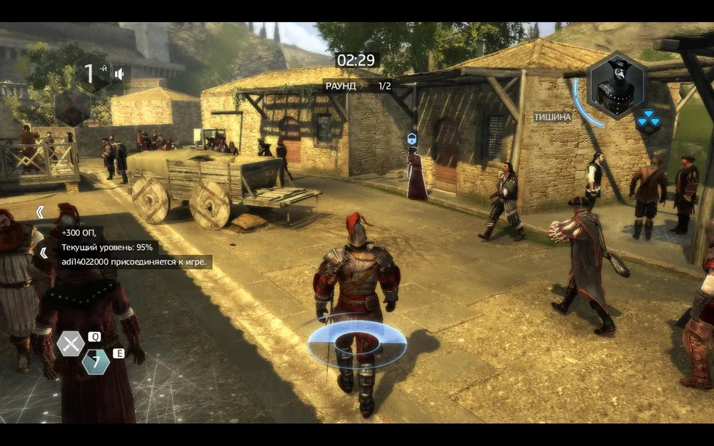 Наиболее полезно применять маскировку, выйдя из поля зрения противника или с похожими людьми. Применяйте способность и например, спокойно садитесь на ближайшую лавочку - враг наверняка пробежит мимо или атакует похожего на вас обычного горожанина (в копилку вам идет +100)
