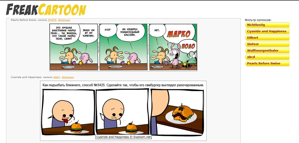 4)freakcartoon.ru — подборка русских переводов про гилберда, крыса, синфест и других.