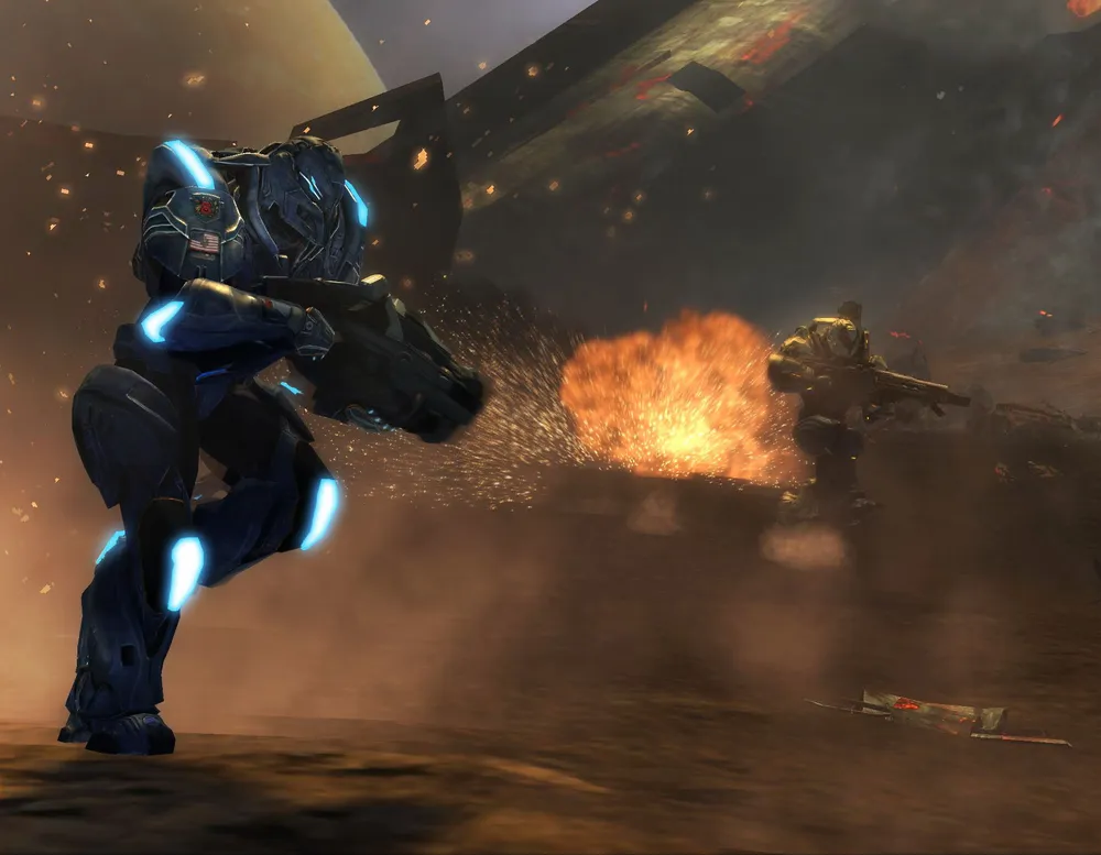 Как же это напоминает смесь Crysis и Shogo: Mobile Armor Division.