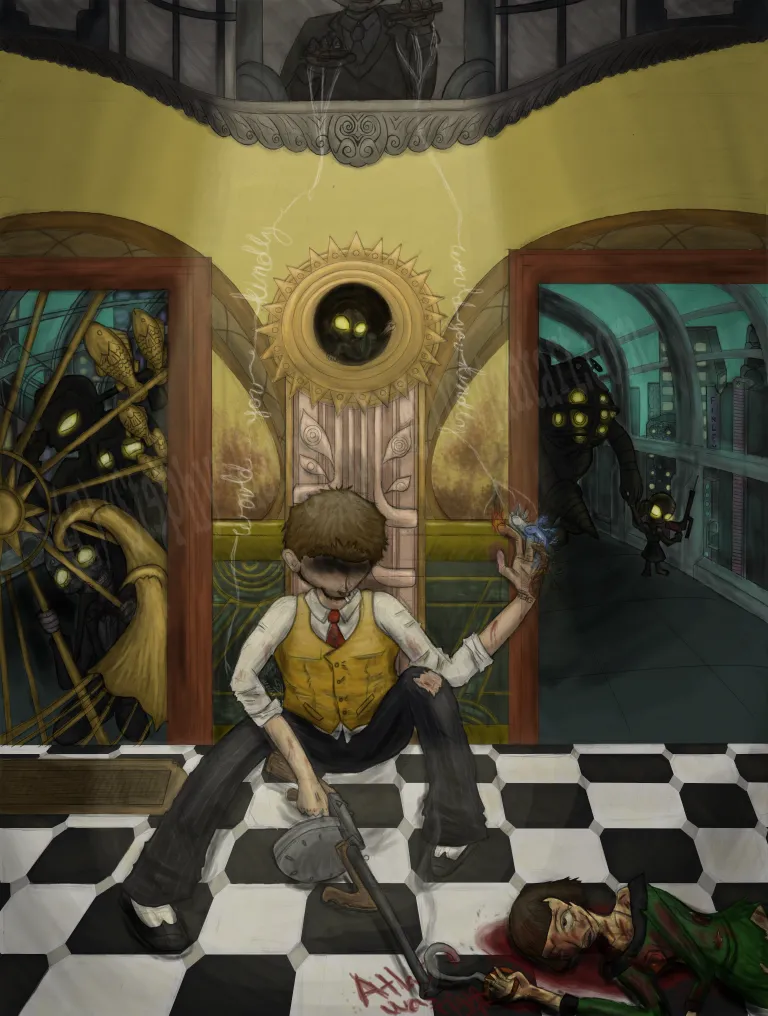 Вот ведь странно - посмотрел два небольших блога про биошок и не нашел почти ни одного поста с артом (нашел разве что скриншоты и концепты). Так что вот в период затишья из 2K Games решил полазить по девианту и склепать небольшую подборочку арта.