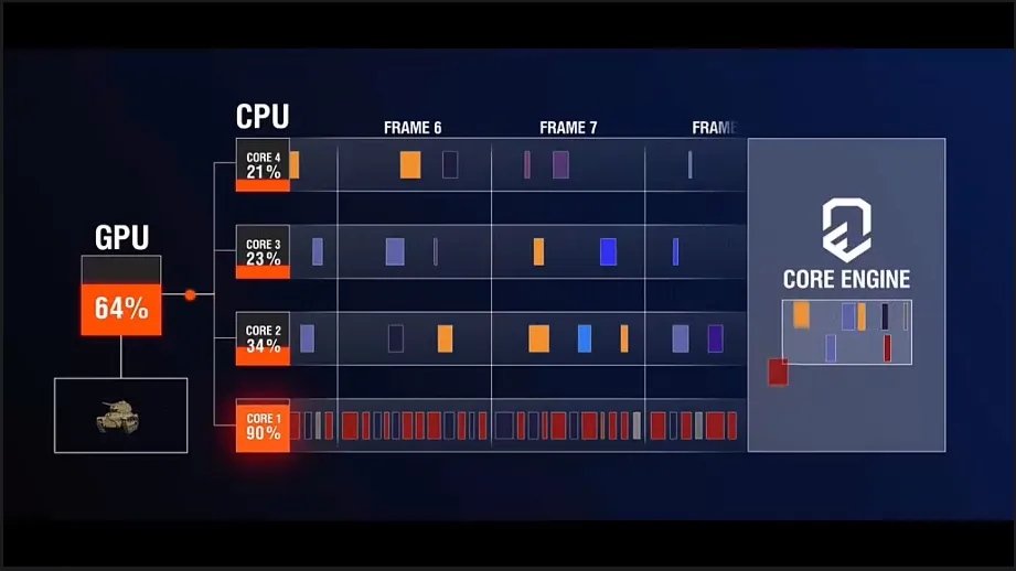 Звучит хорошо, но задача непростая. При низких настройках процессор должен обрабатывать много задач отрисовки, однако на высоких настройках их количество значительно повышается. Плюс они неравнозначные: одни рассчитываются быстрее, другие медленнее. Опять же многие задачи зависят друг от друга: прежде чем начать новые вычисления, нужно дождаться результатов предыдущих.